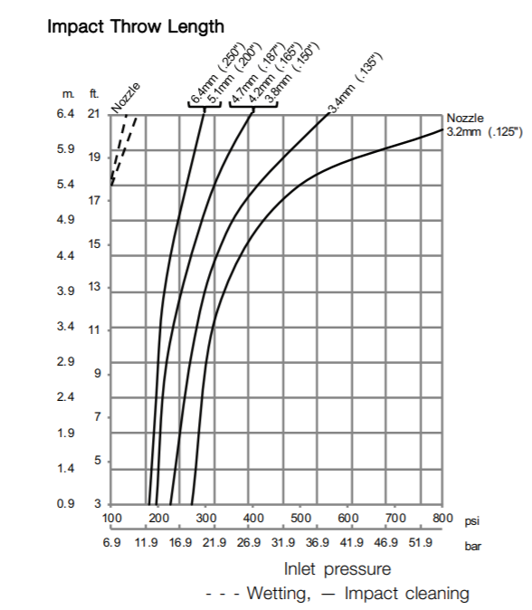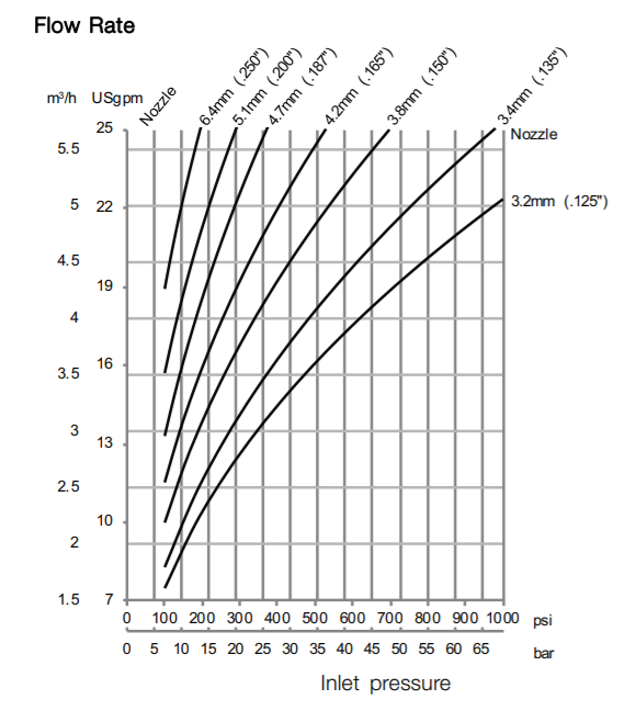 Dual 0.125 in. (3.28 mm), 0.135 in. (3.4 mm), 0.15 in. (3.8 mm), 0.165 in. (4.2 mm), 0.187 in. (4.8 mm), 0.2 in. (5.1 mm) and 0.225 in. (5.7 mm) orifice diameters. Short and long nozzles available. Other nozzle sizes available upon request. |