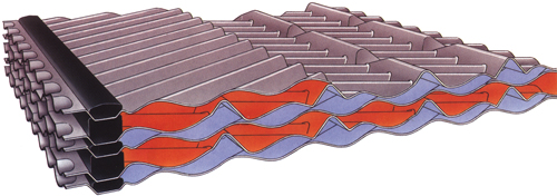 De warmtewisselaarplaten worden in een speciaal patroon geperst. Dit patroon zorgt voor een wervelstroom met zeer hoge turbulentie. Hierdoor worden de optimale omstandigheden gecreëerd voor het bereiken van hoge warmteoverdracht coëfficienten. Daarnaast zorgt de hoge turbulentie voor een zelfreinigend effect in de warmtewisselaar waardoor er een optimale warmteoverdracht ontstaat. Door het plaatpatroon te veranderen, kan de warmtewisselaar in uiteenlopende processen worden toegepast, zelfs met zeer vuile media.
